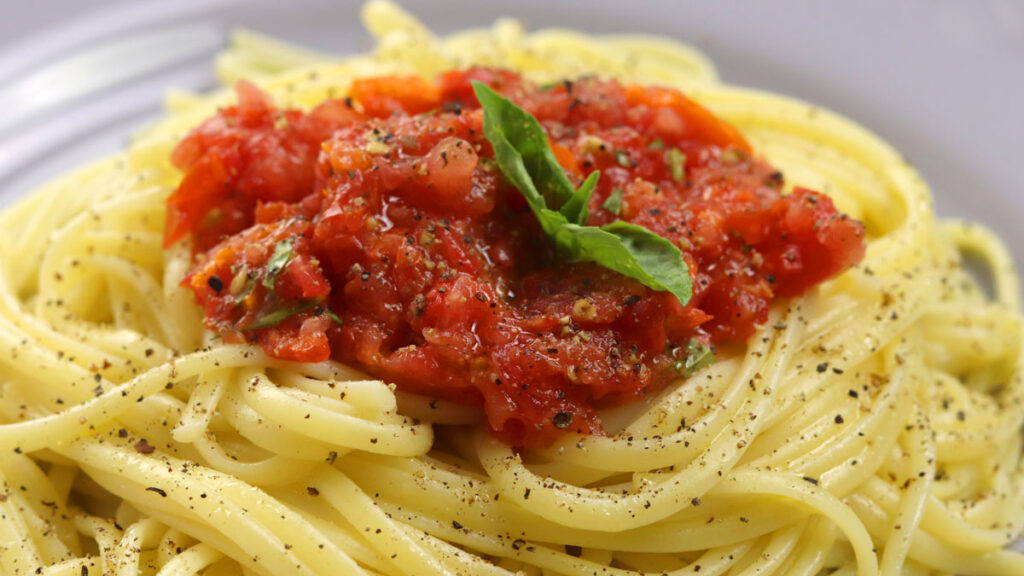 Μακαρόνια με αρωματική κόκκινη σάλτσα.